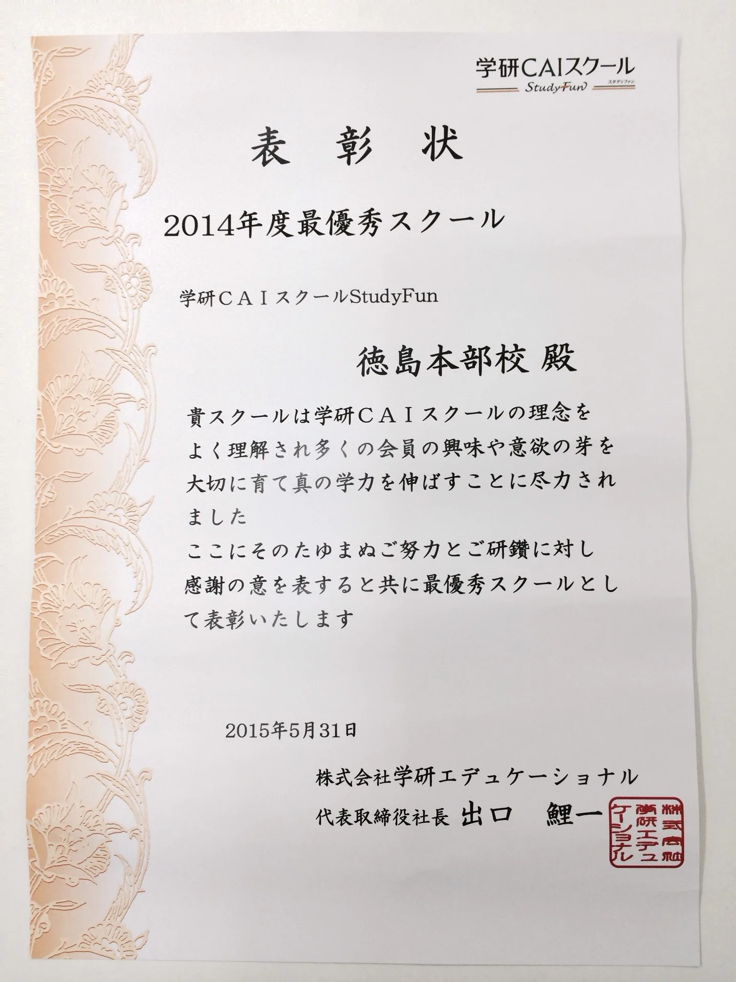 徳島市総体サッカーの応援に行ってきました! 代表日記 2015.06.222025.10.03 今日は徳島市総体サッカーの応援に入田の競技場へ。 天然芝の上で伸び伸びとしたプレーを見せてくれました。 右サイドでハットトリックのI君。 ワントップで1ゴールのT君。 ボランチで渋いプレーを見せてくれたY君。 途中出場で堅実な守りのB君。 出場機会はなかったものの、 精一杯のサポート役に徹したB君、Y君。 みんなカッコ良かったよ! 私も保護者の皆さんと同じ気持ちで、 鼻高々でした。
