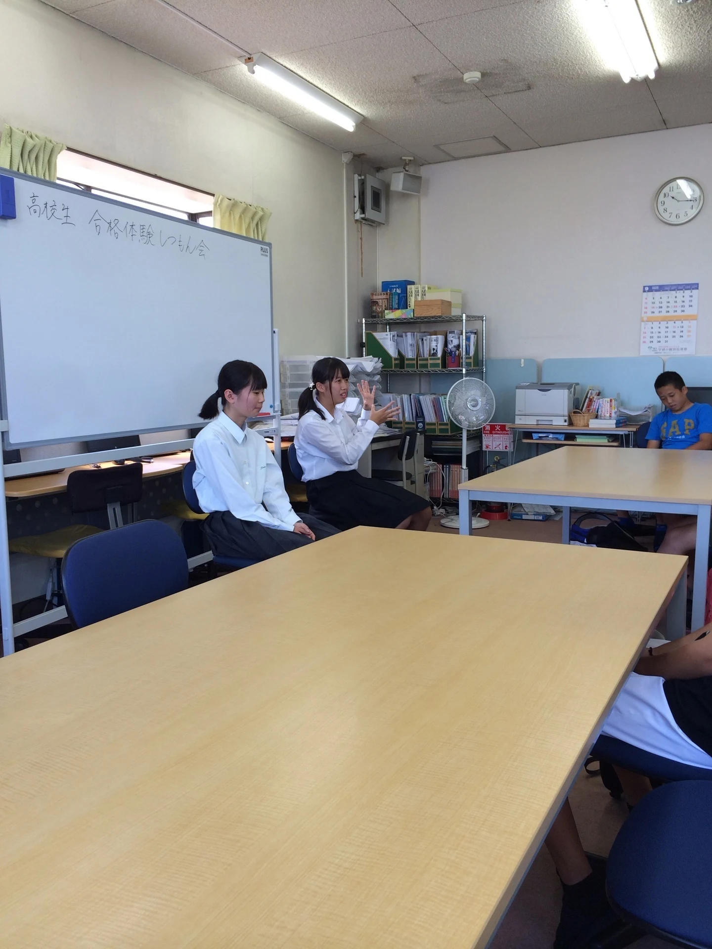 現高校生に聞く 受験体験談 代表日記 2016.08.212025.10.02 8月10日 本校の高校部の城東高校、城南高校、徳島市立高校の生徒が中学3年生を対象に受験体験や高校生活を語ってくれました。 中3生も興味津々。 半年後の受験、そして憧れの高校生活… とても良い刺激になったようです。