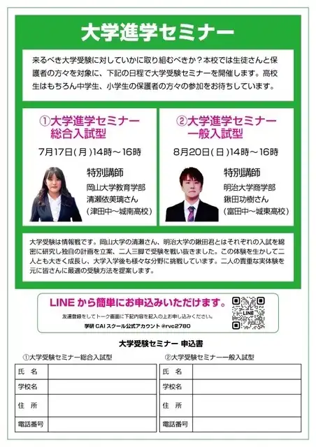 そんな受験勉強の日々を8月20日の大学進学セミナーで語ってもらいます。