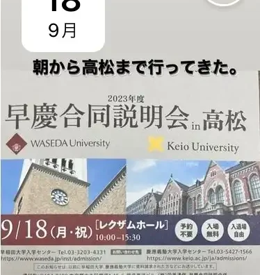 代表日記 私大最高峰 早慶合同説明会 「早慶合同説明会」に参加。私大最高峰の両大学に共通しているのは、「世界に通用する人材の育成」。両大学に関わっている私は良... 2023.09.20 2025.09.22 代表日記